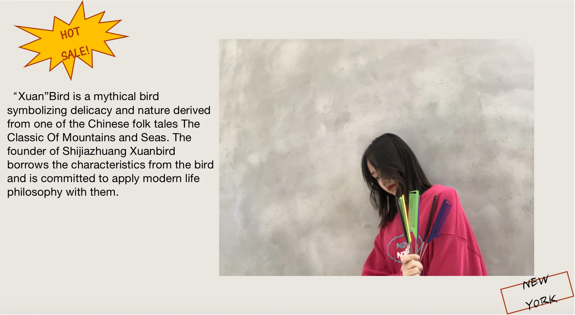Xuan (pure ) Bird is a mythical bird symbolizing delicacy and nature derived from one of the Chinese folk tales The Classic Of Mountains and Seas. The founder of Shijiazhuang Xuanbird borrows the characteristics from the bird and is committed to apply modern life philosophy with them. The company provides cosmetics, hairdressing products, cosmetology consumables, food, daily necessities and raw materials for the environmental technology industry. Adhering to the concept of "Dao (Highest rule) – follows the way of Itself – since founding, Xuanbird has provided top quality products and services offline with internal production, processing industrial chains, and purchasing departments to more than 500 enterprises covering more than 20 provinces and regions in China.