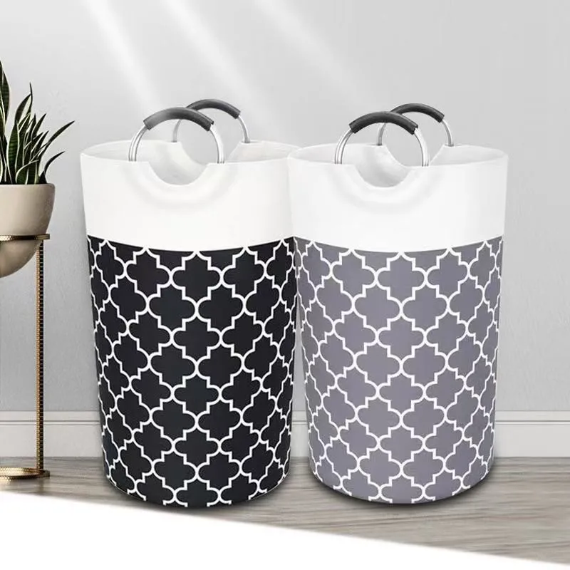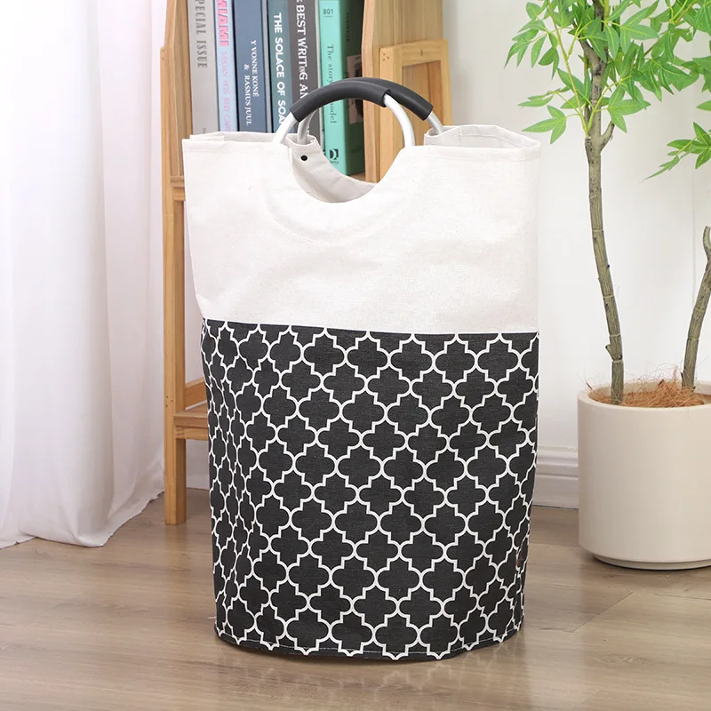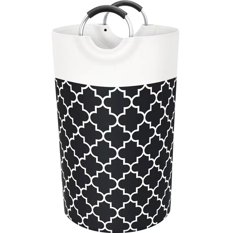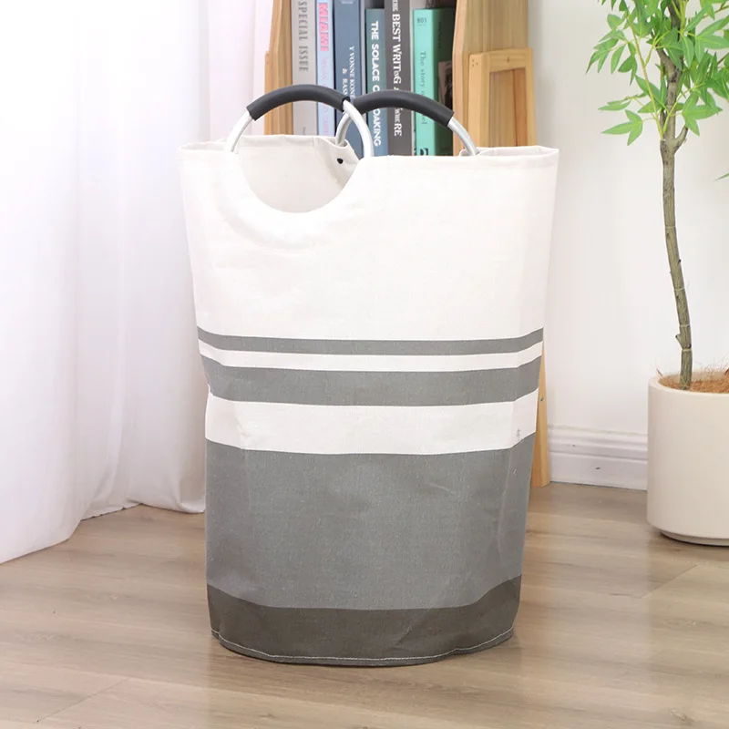 Freestanding Collapsible Polyester Clothes Hamper Portable Laundry Basket Aluminum Handle Clothing Storage Bag Home Storage