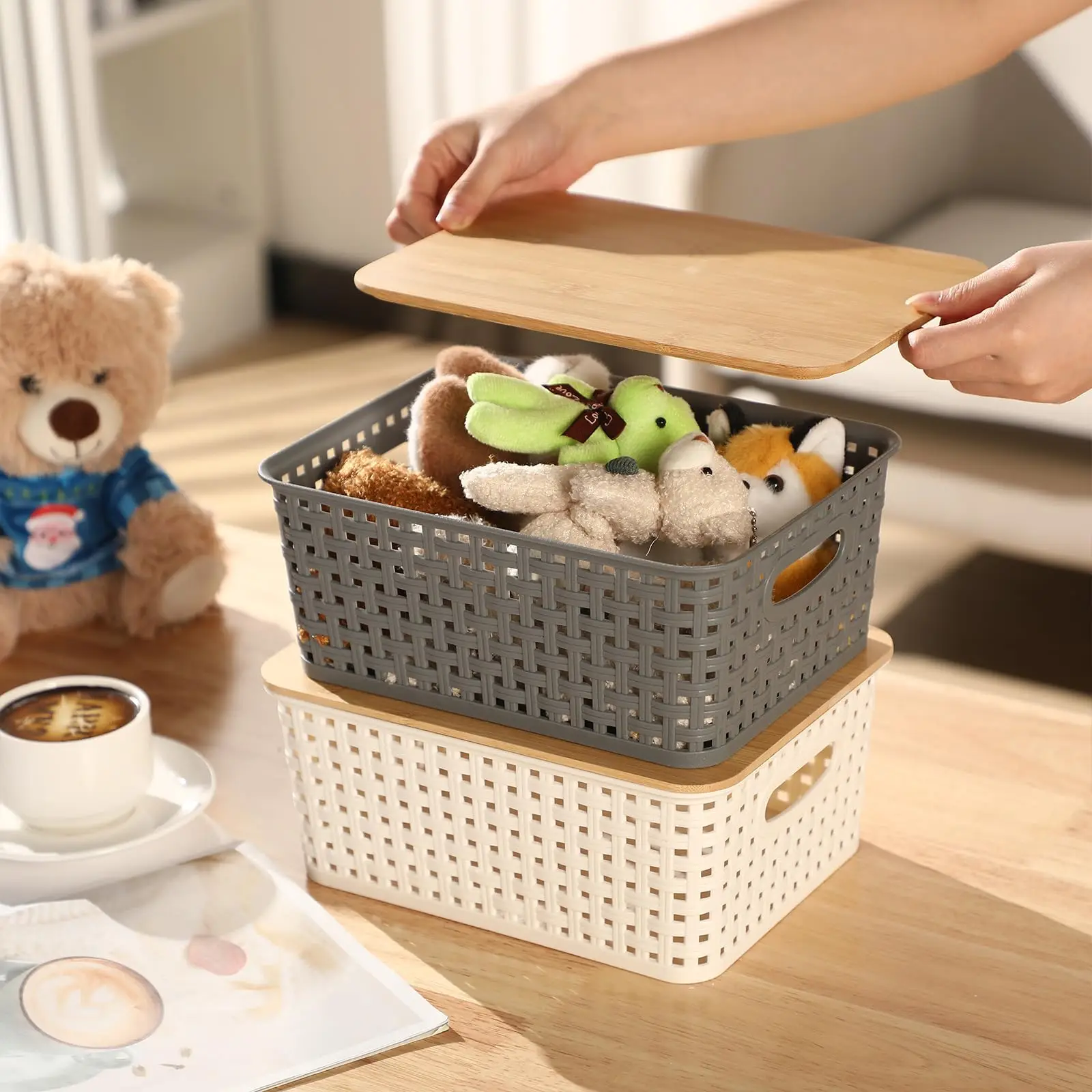 Organizing Shelves Drawers Plastic Storage Containers Stackable Storage Basket With Bamboo Lid