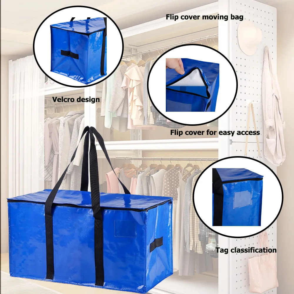 Raytop PP Woven Heavy-Duty Extra Large Storage Tote Bags Folding Style Space-Saving Moving Bags