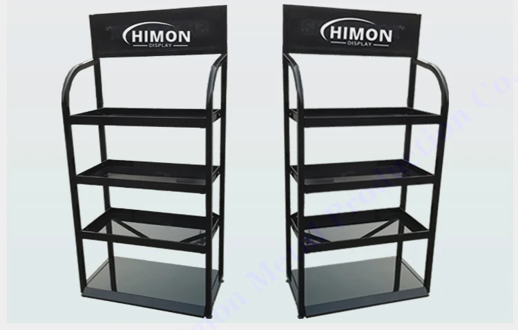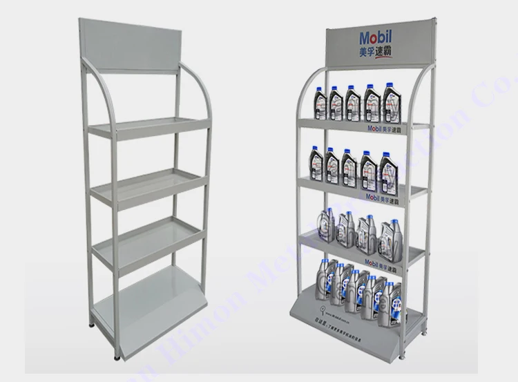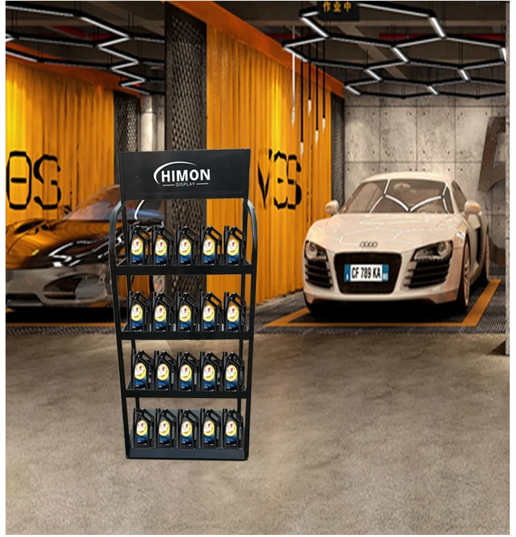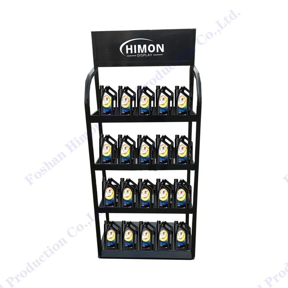 Retail Shop Gas Station Metal 4 Tiers Shelves Car Motor Engine Mobile Lubricating Oil Display Rack Stand for Store