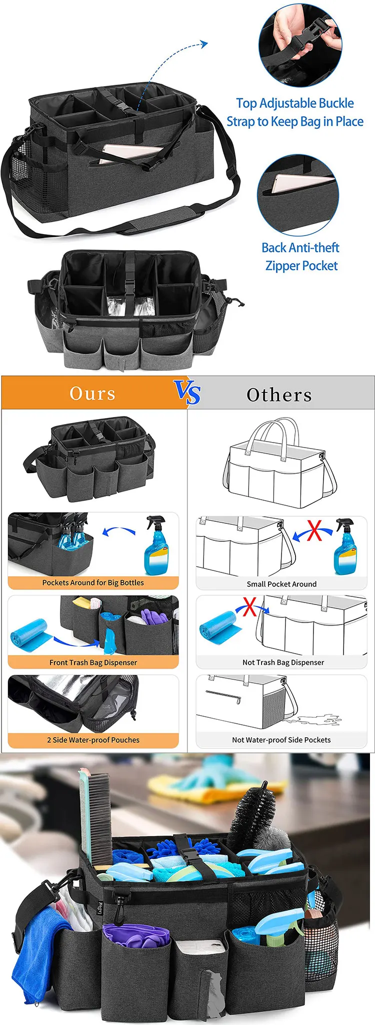 Be the first to review “Wholesale Hot Selling Large Cleaning Supplies Tote Bag Cleaning Organizer Bag Wearable Cleaning Caddy Bag”
