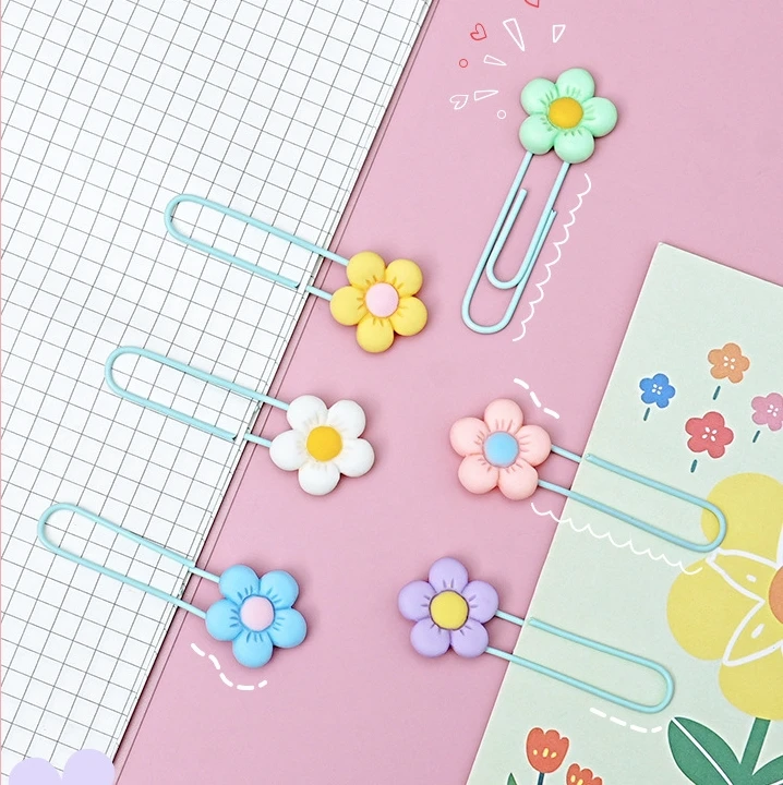 China Manufacture Quality Bookmarks PP Easter Bookmarks Cartoon flower Creative Metal Bookmark Paper Clip